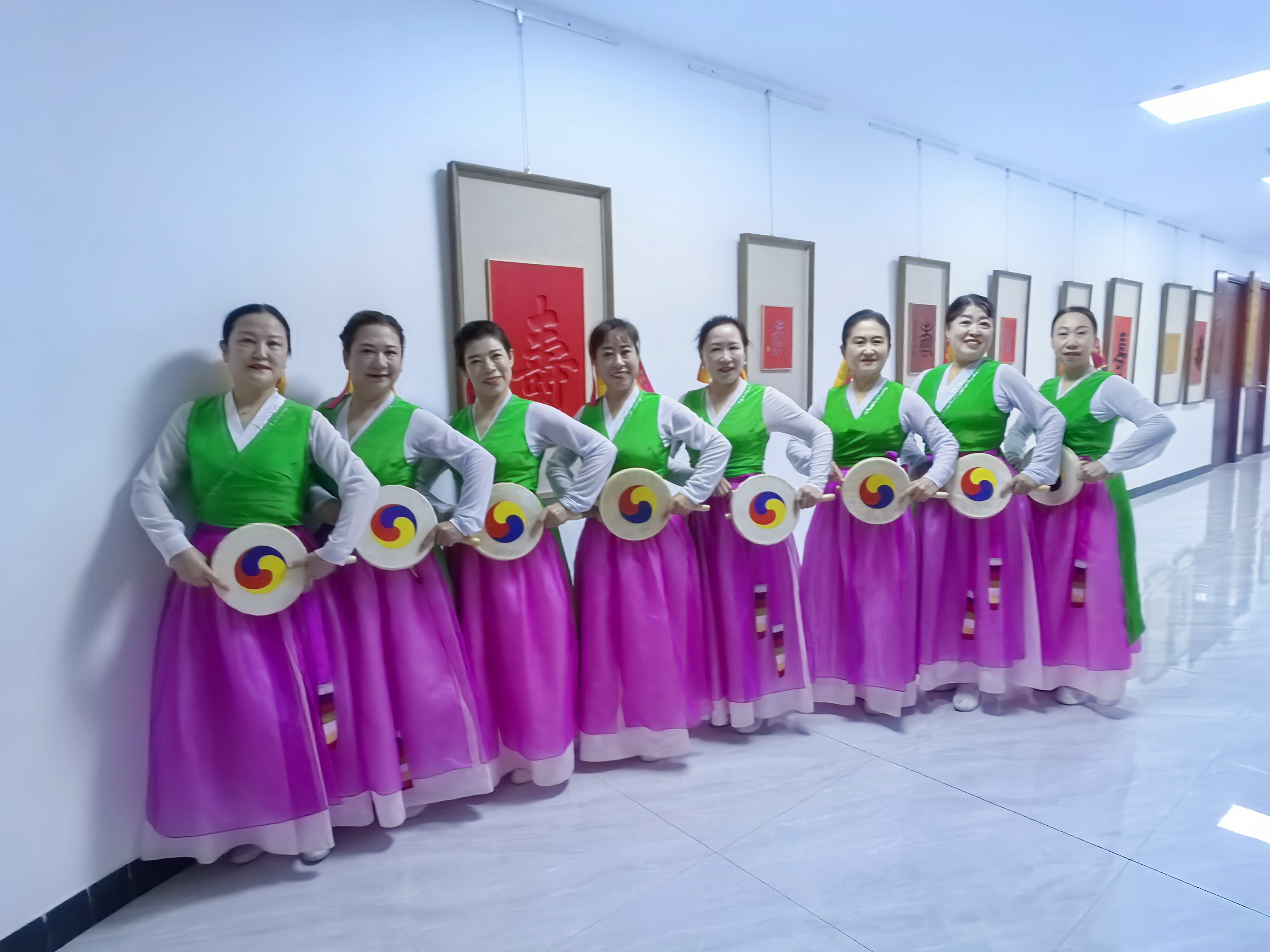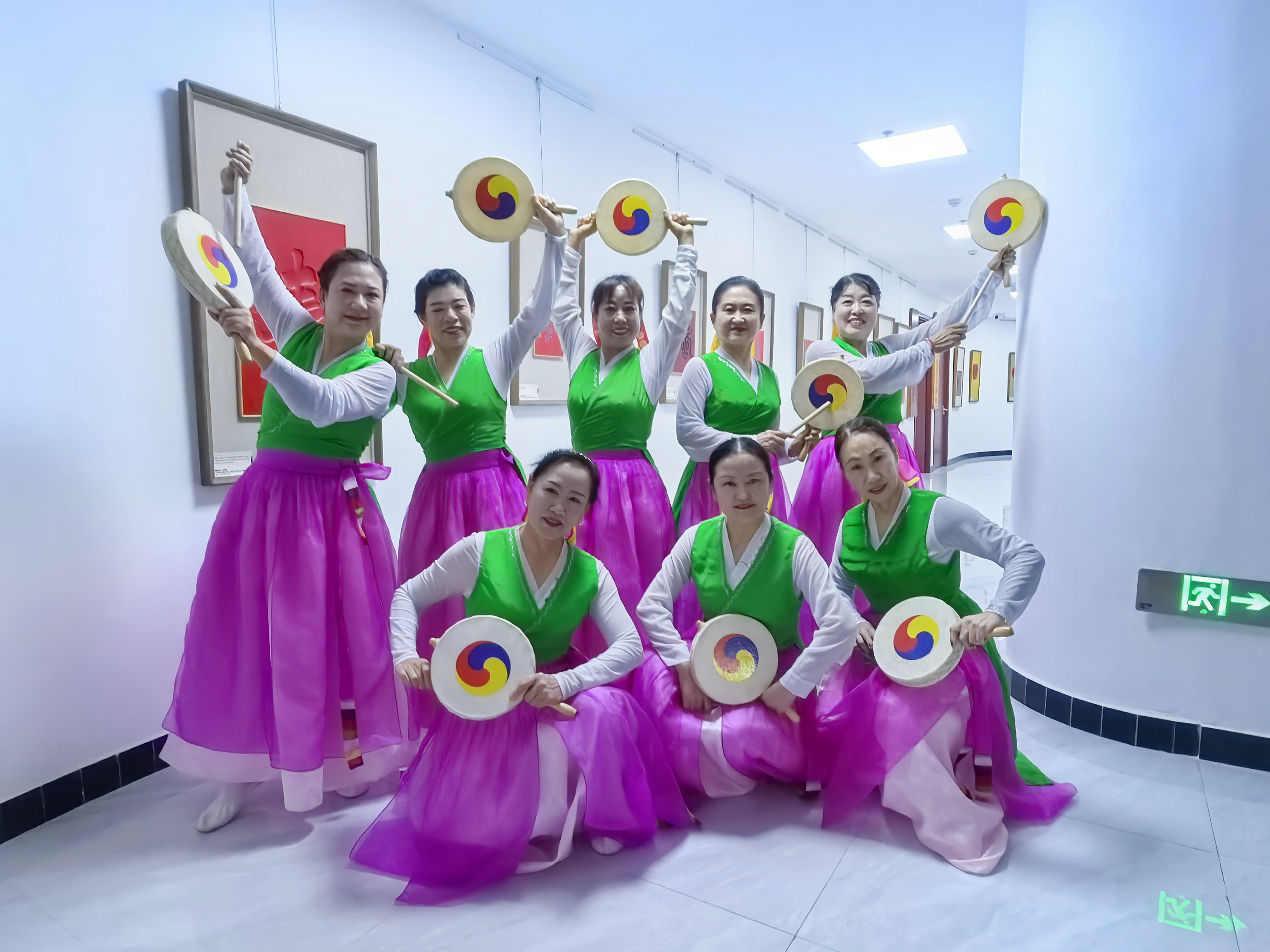 가동식에서 독창, 2인창, 경극, 시랑송, 신강춤, 치파오 전통의상쇼, 손북춤 등 정채로운 공연이 선보여 관객들의 눈길을 사로잡았다. 그중 윤영애 교사가 지도한 8인 손북춤 <붉은 해 변강 비추네>가 시민정국의 특별초대로 무대에 올라 환영을 받았다.