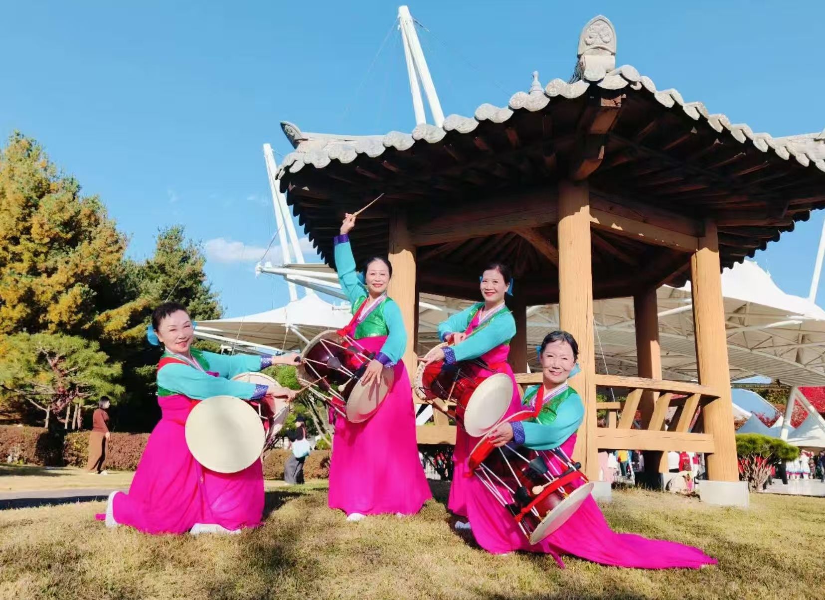그중 료양시 윤영애 무용교사가 지도한 하문시 혜명자선예술단은 휘모리 장단과 자진모리 장단에 맞춰 4인 장고춤을 선보여 환영을 받았고 최종 금상을 수상했다.