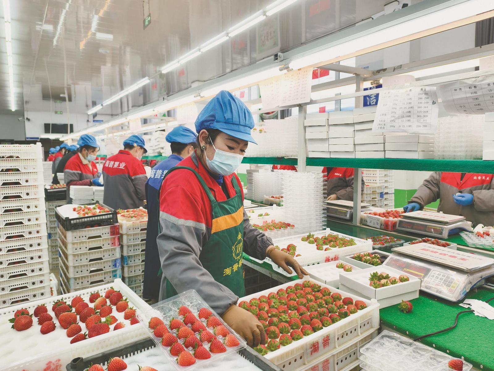 일전 단동 동항시타오푸(淘普)농업발전유한회사의 선별 작업장에서 일군들이 갓 수확한 신선한 딸기를 선별하여 포장하고 있다. 포장을 마친 딸기는 랭장 물류를 통해 상해, 항주, 하문 등 남방 도시의 슈퍼마켓으로 배송된다.