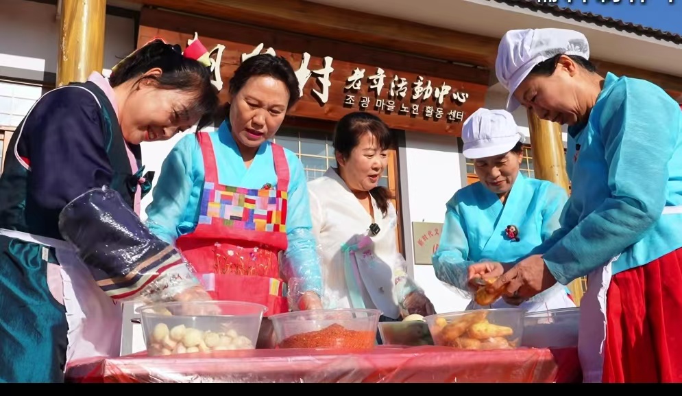 이날 리창연 촌당지부 서기 겸 촌주임은 부녀들을 이끌고 촌로인활동쎈터 앞마당에서 김치 제작을 선보였다.