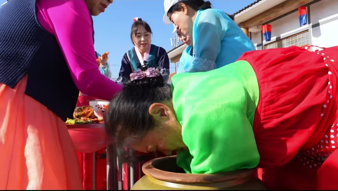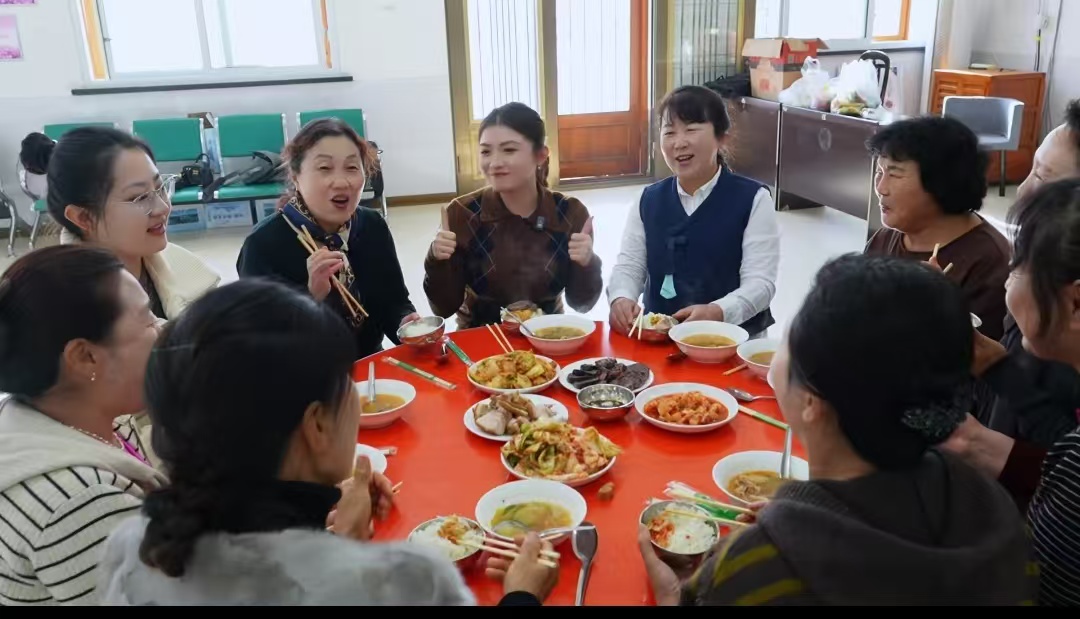 점심시간, 기자들은 부녀들과 함께 쌀밥에 김치, 김치볶음 등 다양한 조선족 음식을 맛보며 조선족의 풍부한 음식문화를 체험했다.