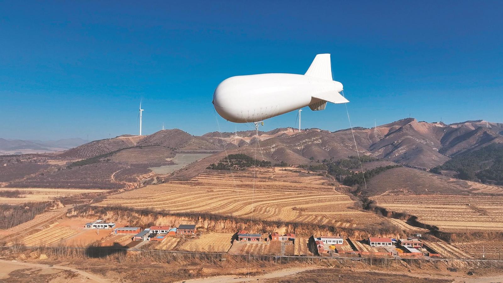 국내 최초로 전력 원격 모니터링을 위해 특별 제작된 계류 비행선이 조양시 건평현에서 첫 공개되였다.