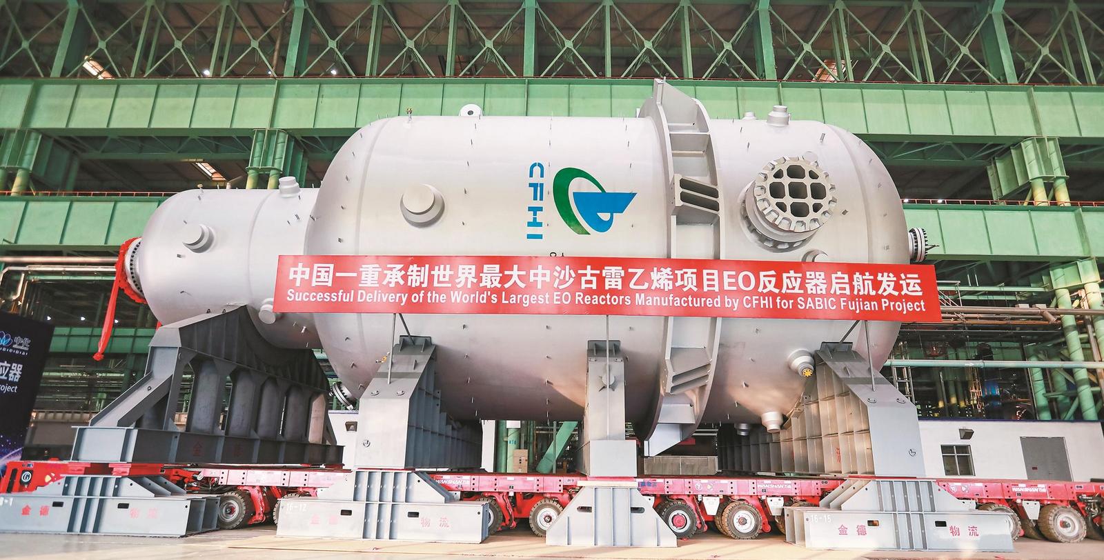 일전 중국일중(一重)그룹에서 제작한 중—사우디 구레 에틸렌 프로젝트 EO/EG 장치의 EO반응기가 일중그룹 대련핵전석화장비제조기지에서 정식으로 출항 및 발송되였다. 해당 장비는 직경이 가장 크고 단일 중량이 가장 무거운 EO반응기로서 세계 제조 기록을 경신했다. 이는 중국일중그룹의 기술 혁신 능력과 제조 실력을 과시했을 뿐만 아니라 ‘중국 제조’가 국제 주요 협력 프로젝트에서의 핵심적 가치를 뚜렷이 보여주었다.