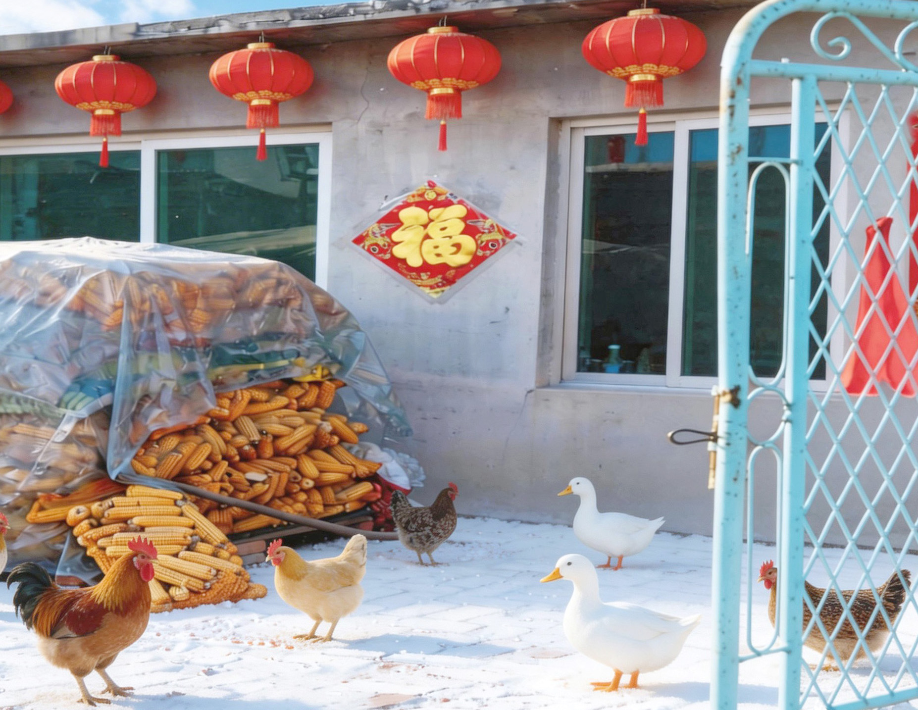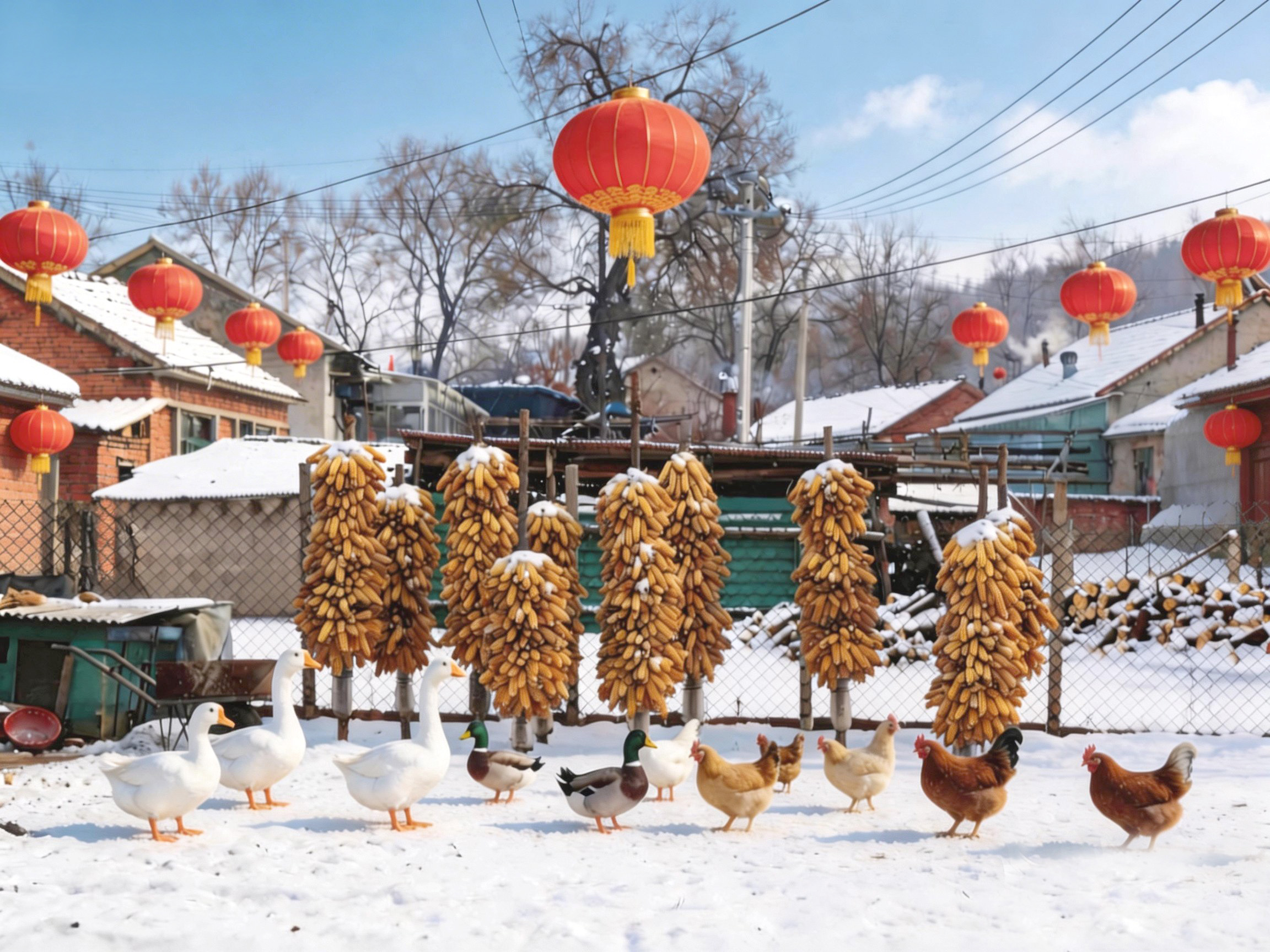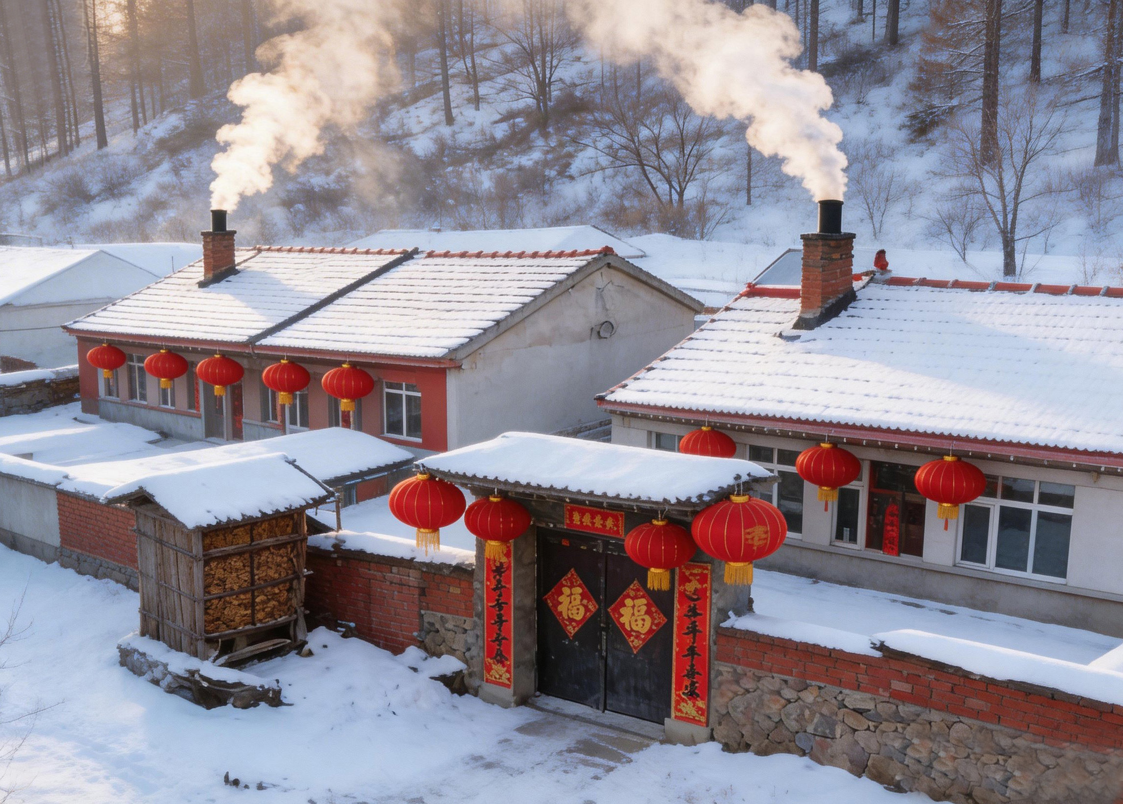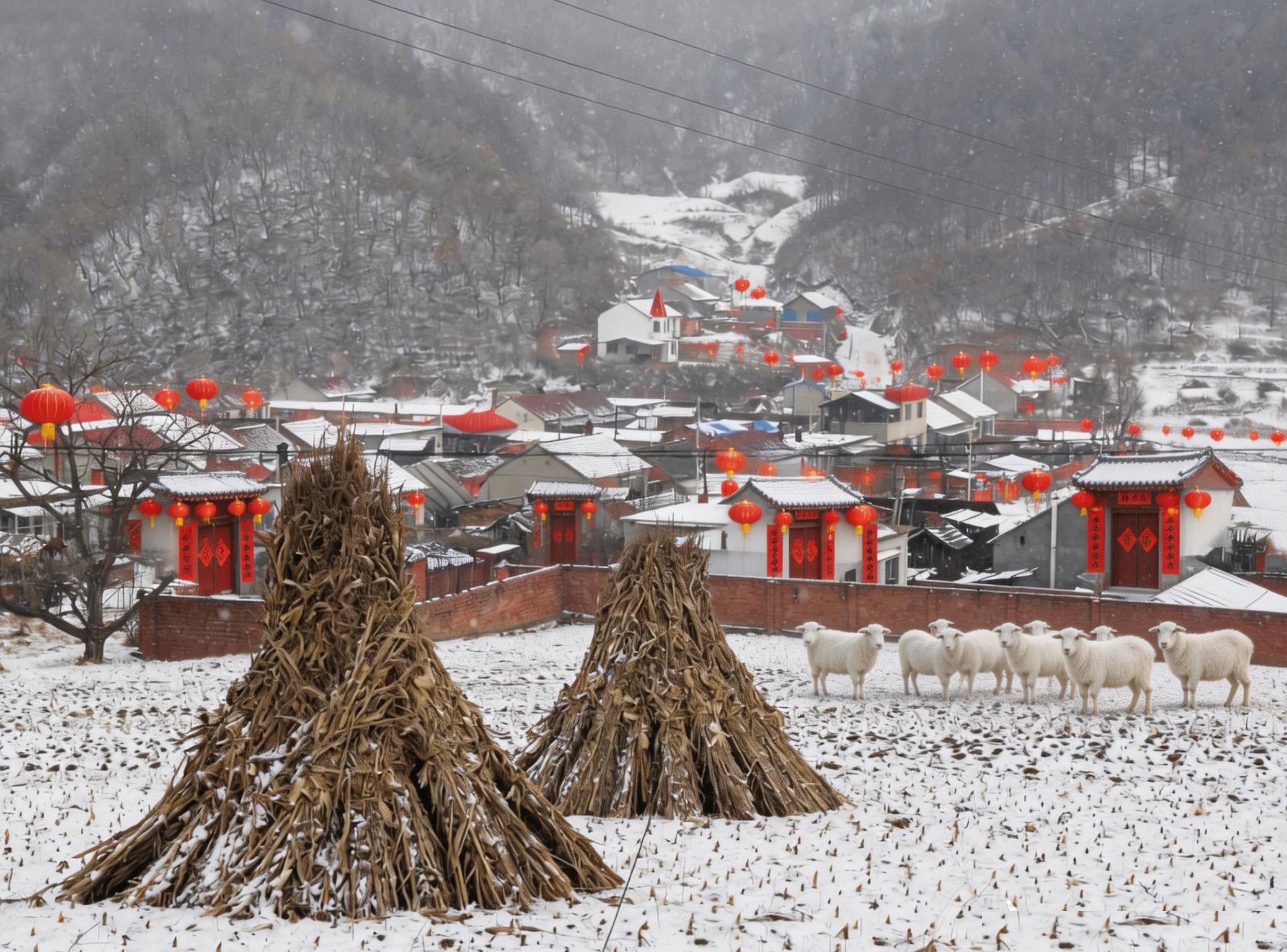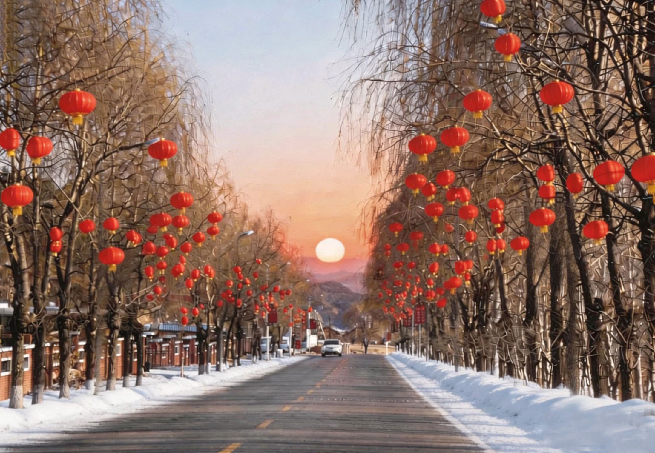 마을 어귀 길가의 가로수, 포근한 춘설 속에 잠겨 봄꿈을 꾸는 듯한 들녘, 가축들로 북적이는 정겨운 농가까지... 곳곳마다 홍색 물결이 일며 아름다운 시골의 설명절 풍경을 펼쳐보였다.