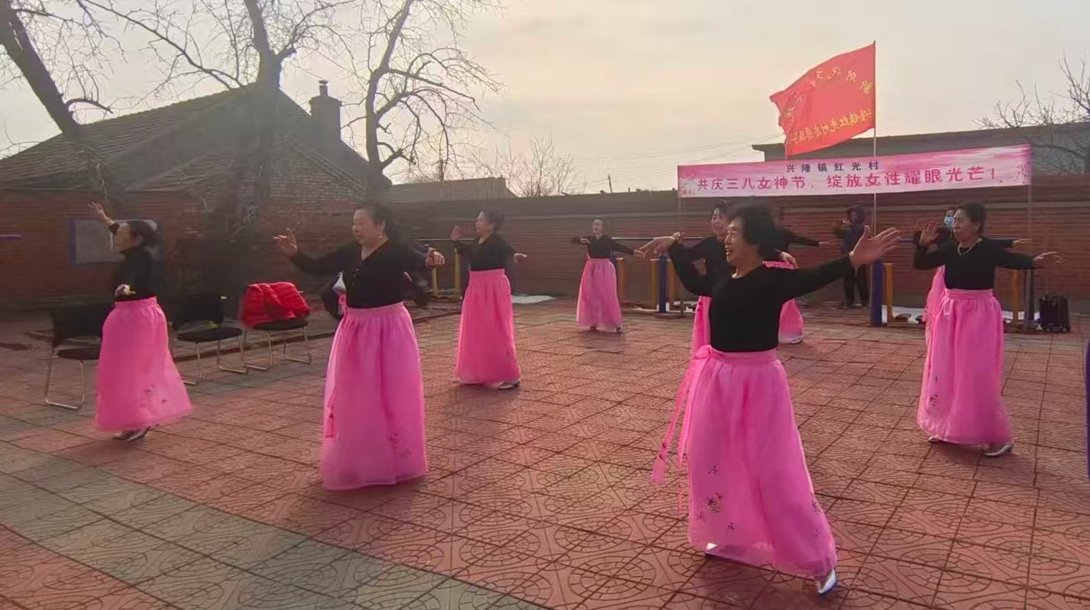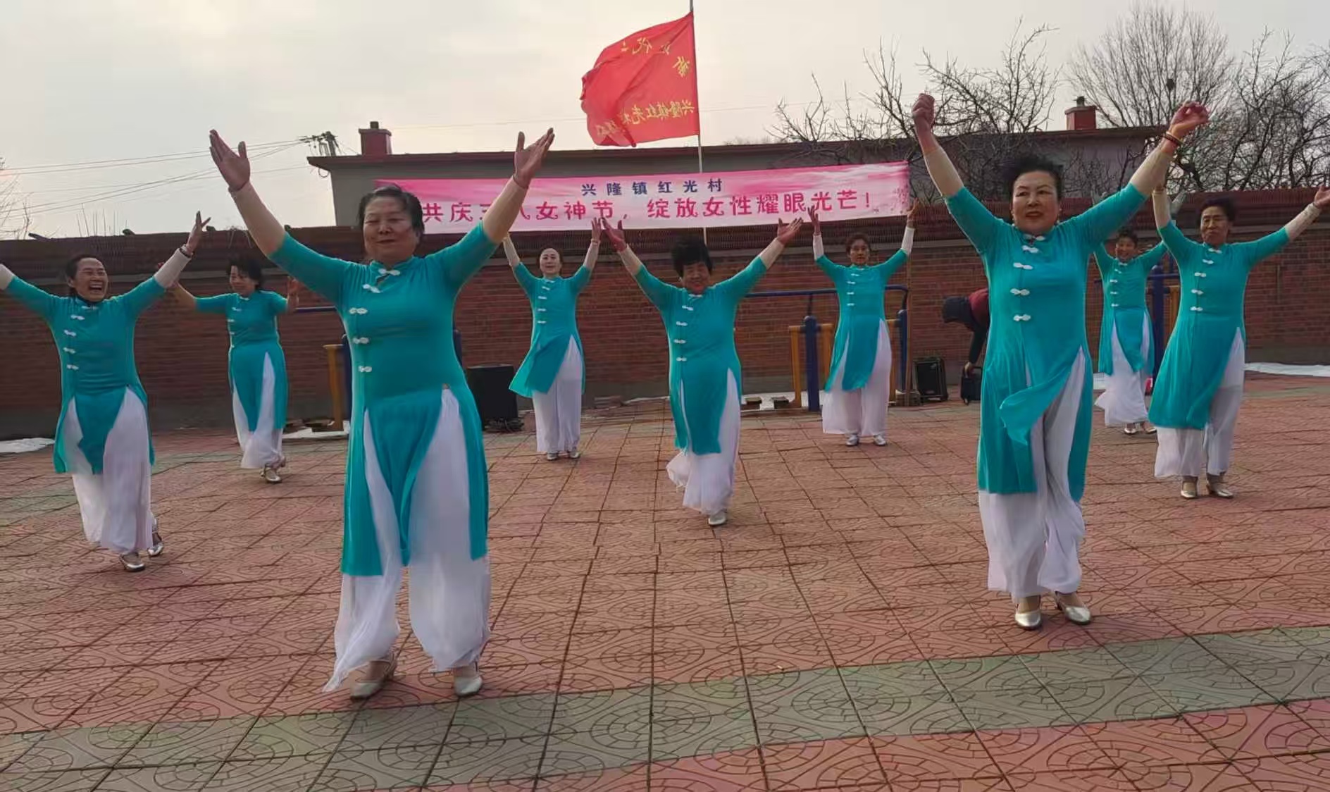 3월 8일, 료양현 흥륭진 홍광조선족촌 40여명 녀성들은 촌사무실에서 광장무 공연과 윷놀이 시합을 벌였다. 녀성들은 <아라리가 났네요>, <흥부자>, <희망찬 전야에서> 등 선률에 맞춰 정채로운 광장무를 선보여 시민들의 시선을 끌었다.