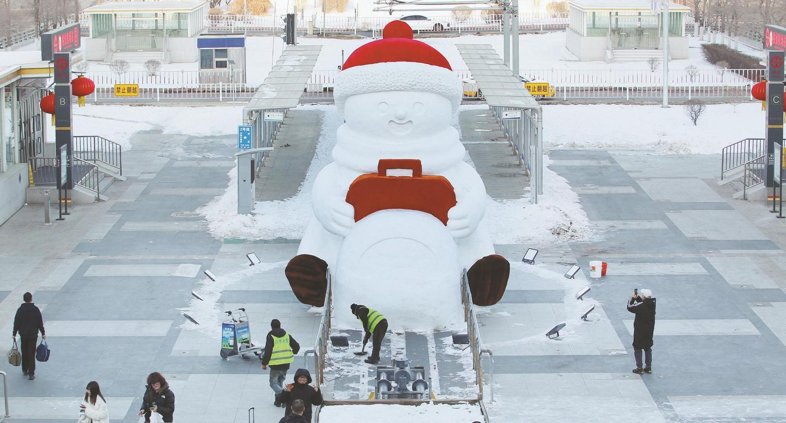 일전 심양도선국제공항에는 깜짝 선물이 등장했다. 커다란 눈사람이 조용히 모습을 드러내며 공항의 '관광객을 위한 새 랜드마크'로 자리잡았다.