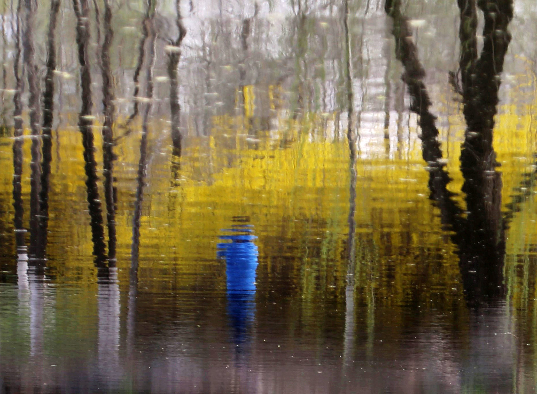 노란 영춘화로 물든 호수공원
